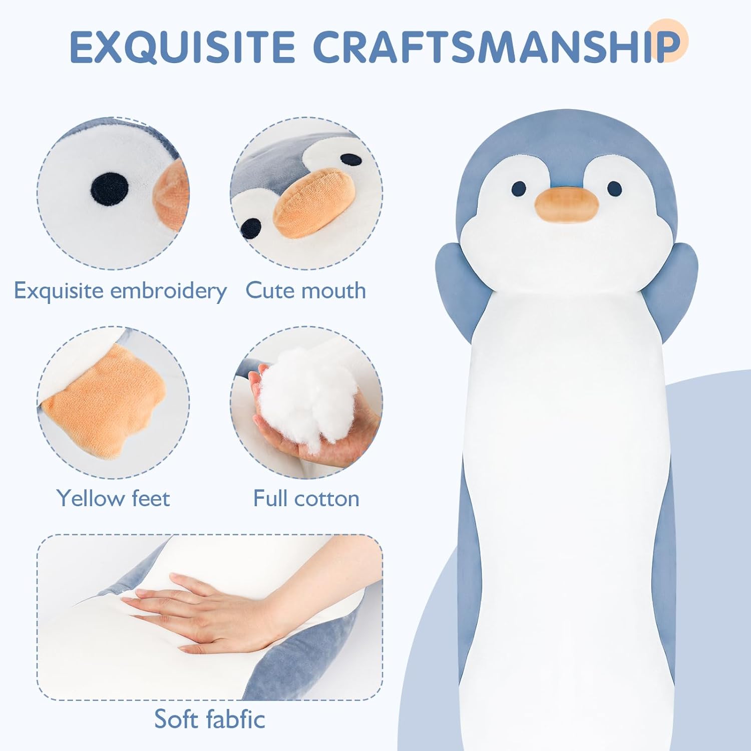 36" Penguin Stuffed Animal, Soft Jumbo Long Cuddle Pillow, Cute Blue Penguin Plush Body Pillow Plushies Toy Gift for Kids, Boy and Girls Birthday,Valentine