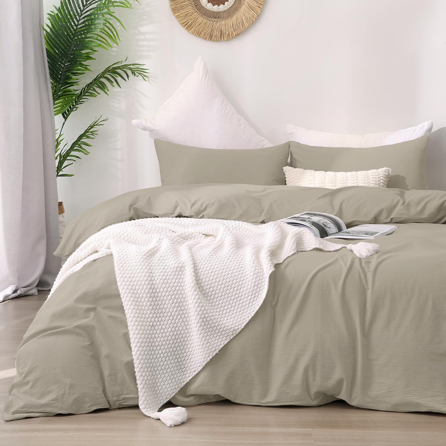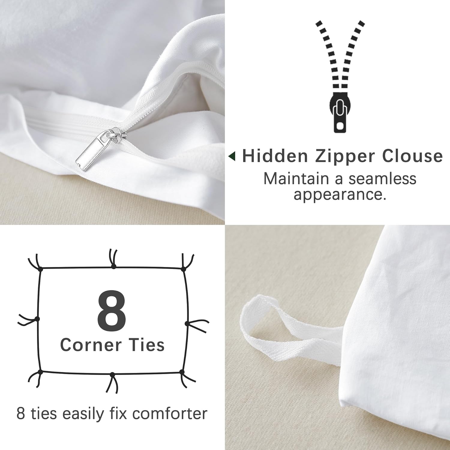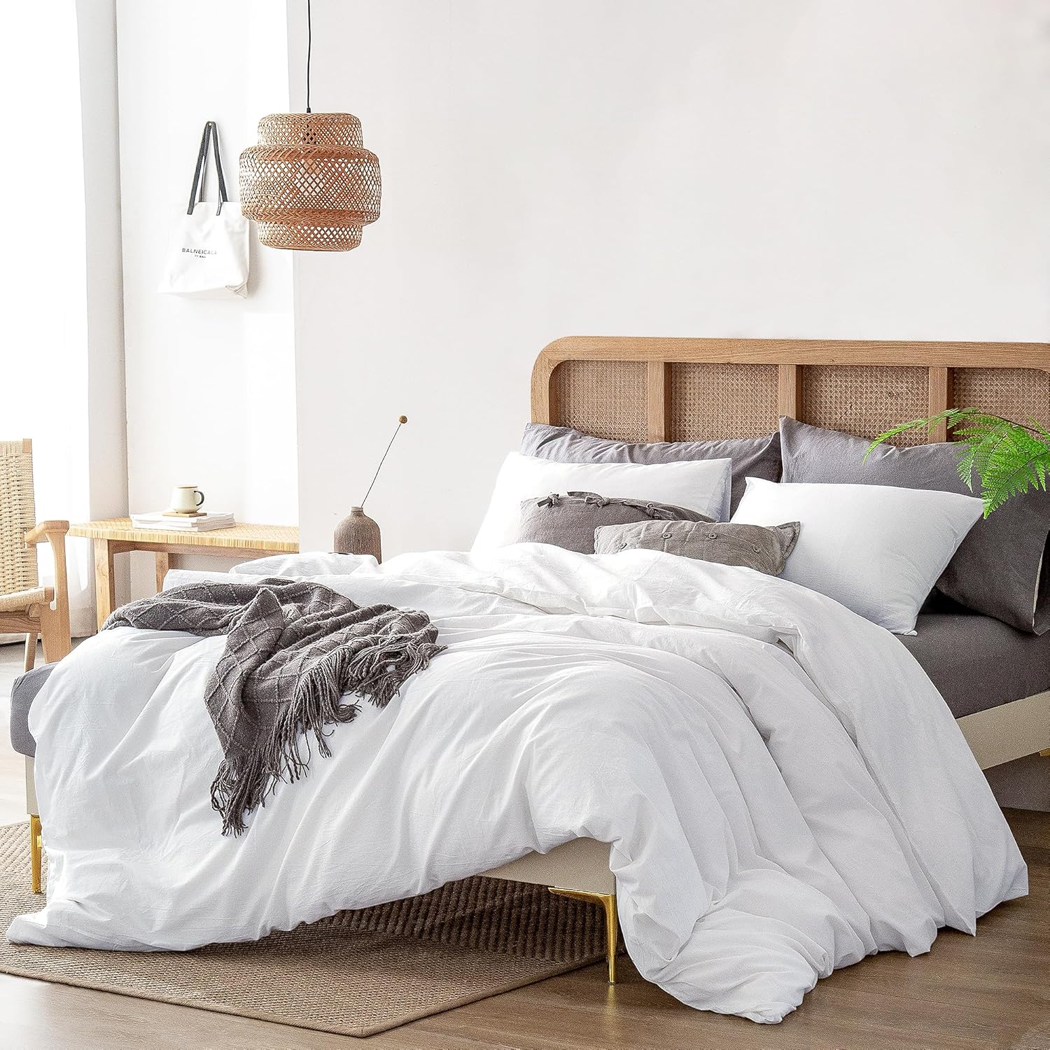 ATsense Duvet Cover King Size, 100% Washed Cotton Linen Feel Super Soft Comfortable, 3-Piece White Duvet Cover Bedding Set, Long-Lasting and Easy Care, Simple Style Farmhouse Comforter Cover