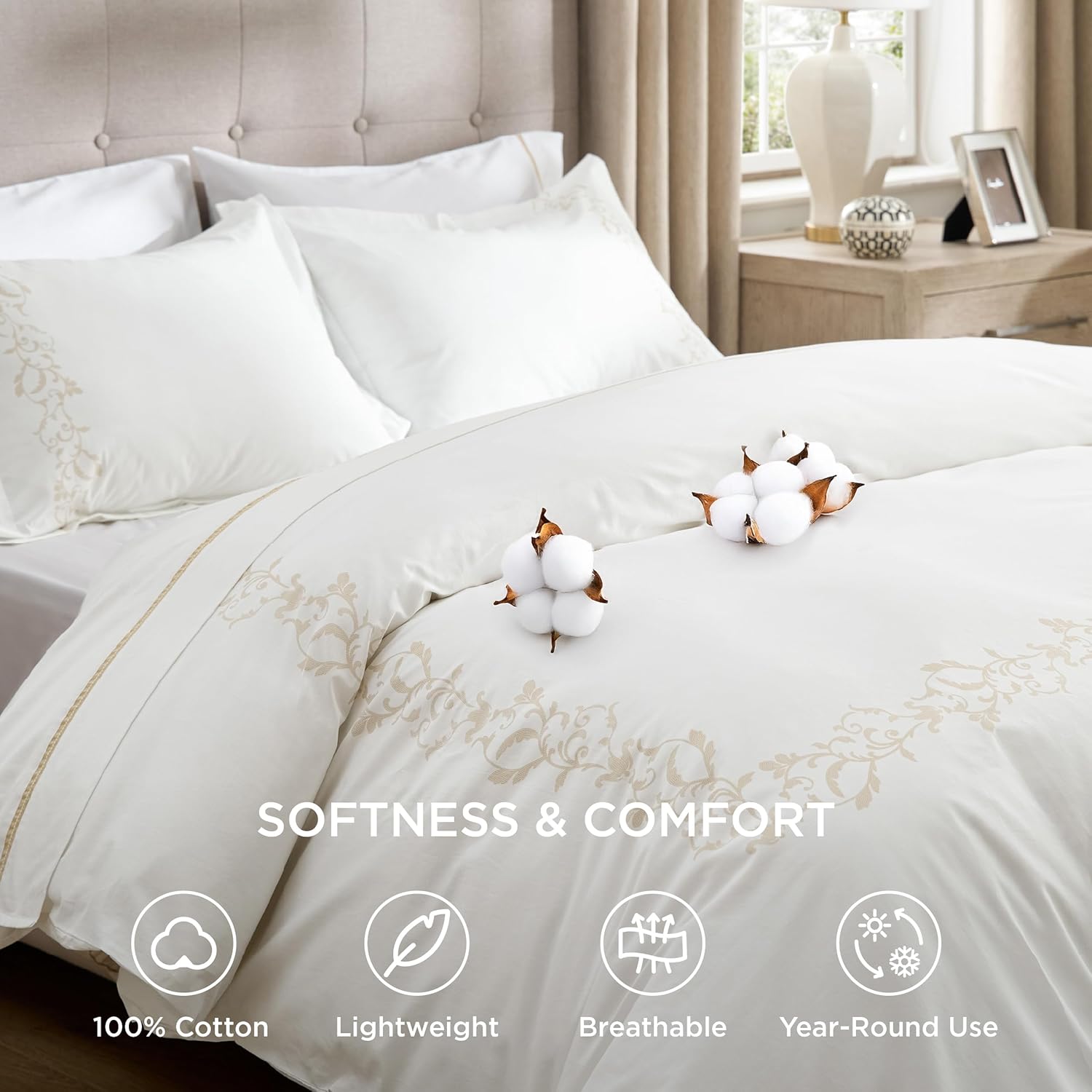Bedsure Luxury Hotel Duvet Cover King Size, 100% White Cotton Curly Frame Bedding Set, Includes 1 Duvet Cover 104x90 Inches with Zipper Closure & 2 Pillow Shams, Comforter Sold Separately