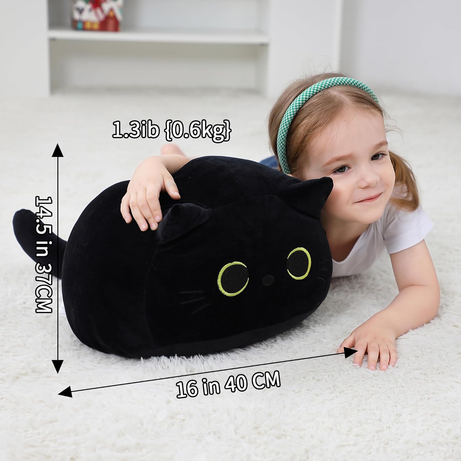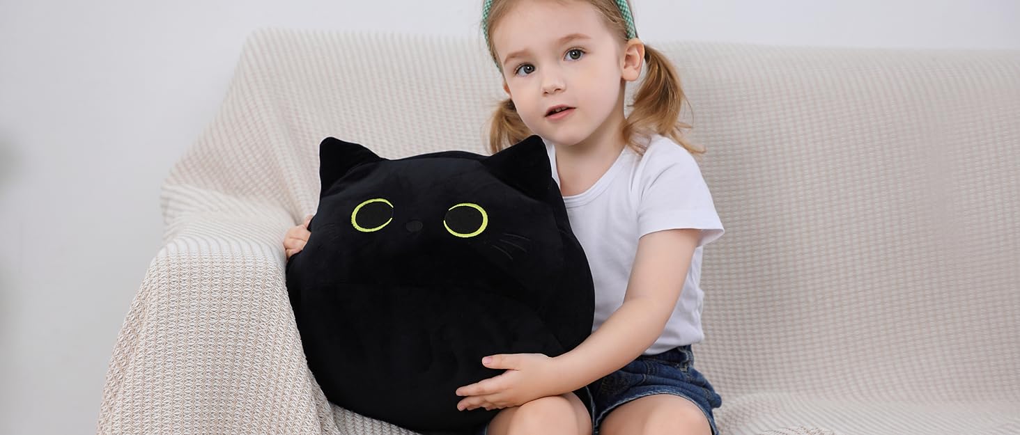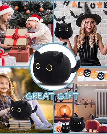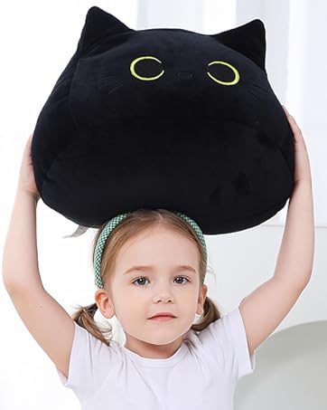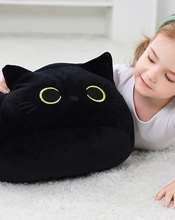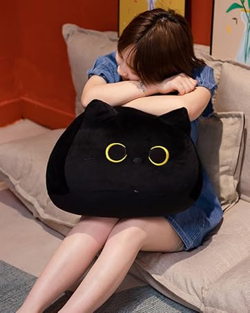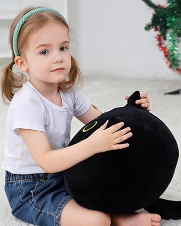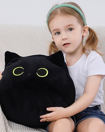 Black Cat Plush Toy 16'' Black Cat Pillow, Soft Plush Doll Black Cat Stuffed Animal, 3D Black Cat Plushies Pillow Baby Cute Plush Toys Shape Cat Design Sofa Fat Pillow Gifts for Boys Girls