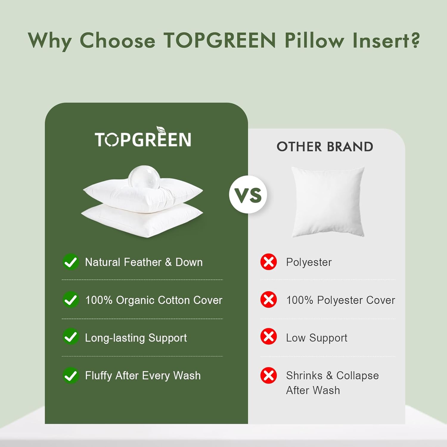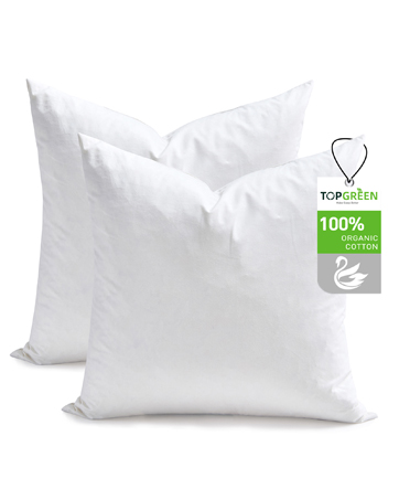 Feathers Down Throw Pillow Inserts 22x22, Set of 2, 100% Organic Cotton Shell, Soft Decorative Square Pillows Insert for Living Room Sofa, Couch, or Bed (White)