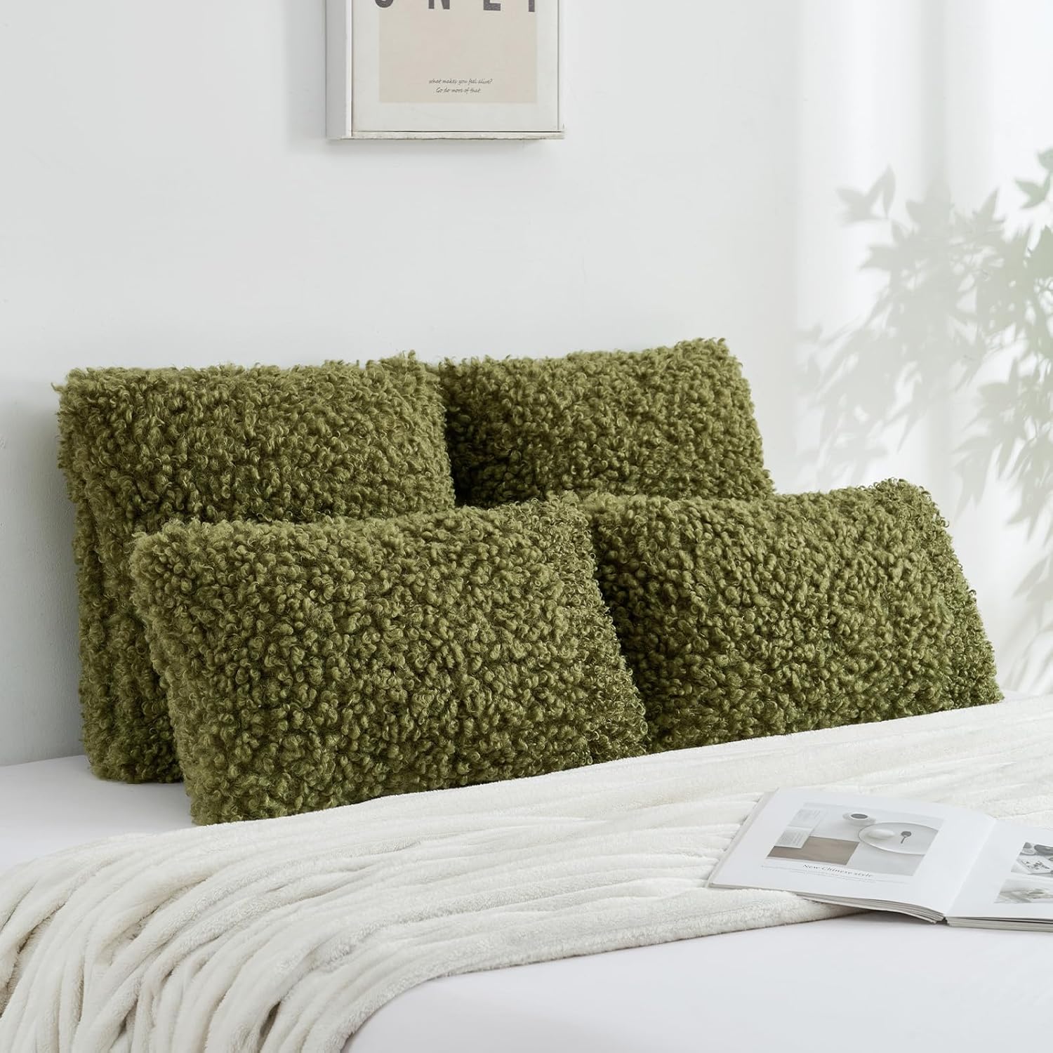 FUTEI Olive Green Decorative Throw Pillow Covers 18x18 Inch Set of 2,Soft Fluffy Faux Wool Fur Boucle Textured Cushion Case,Modern Home Decor for Couch Bed Living Room Office