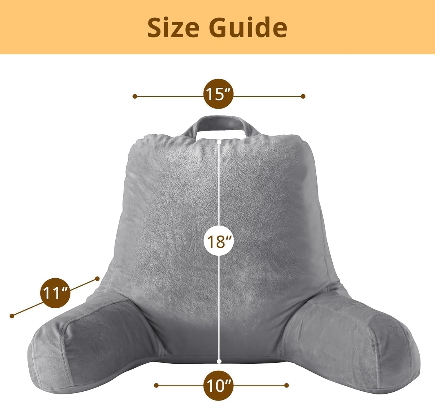 Sasttie Reading Pillows for Sitting in Bed Adult, Velvet Back Pillow Bed Sitting Up, Back-Rest Support Cushion for Sit Up on Couch, Sofa, and Floor, Dorm Essentials, Oeko-Tex Certified, Dark Grey